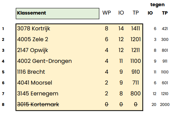 Voorlopige tussenstand van de dames: